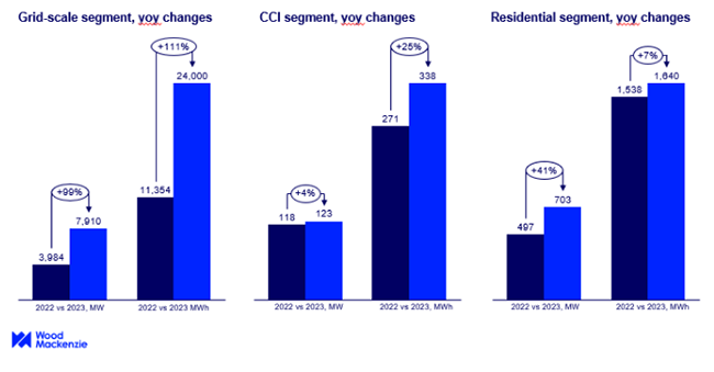 The Community, Commercial, and Industrial (CCI) segment saw no significant change quarter-over-quarter, with 33.9 MW installed in Q4. Installation capacity was relatively evenly split between California, Massachusetts, and New York. As per the report, total deployments in 2023 across all sectors reached 8,735 MW and 25,978 MWh, marking an 89% increase compared to 2022. In 2023, distributed storage exceeded 2 GWh for the first time, supported by an active first quarter for the CCI segment and over 200 MW of installations in both Q3 and Q4 in the residential segment.