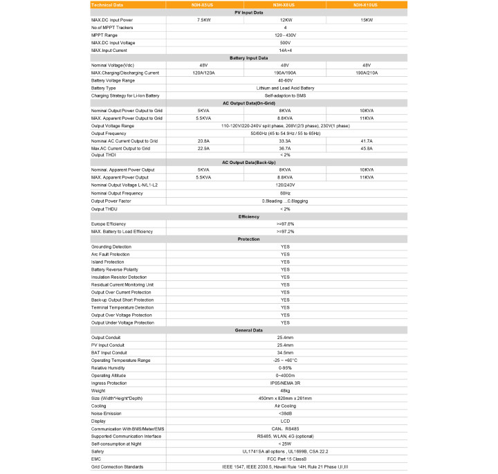 | Technical Data | N3H-X10-US |